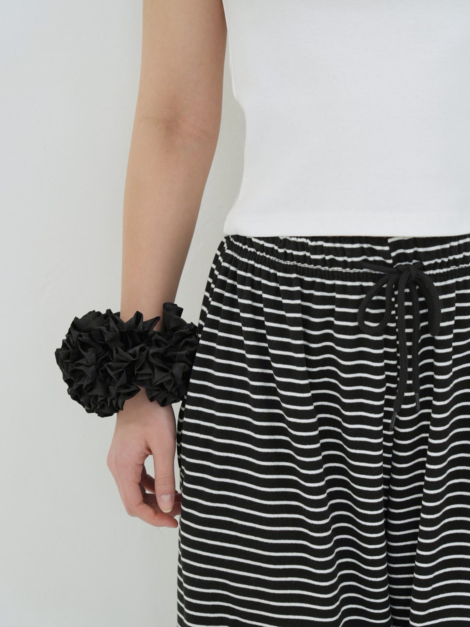 柔らかな素材とウエストゴムが生み出すストレスフリーな履き心地は、 日常の動きに自然に寄り添いながら、スタイルにほどよいアクセントをプラスします。