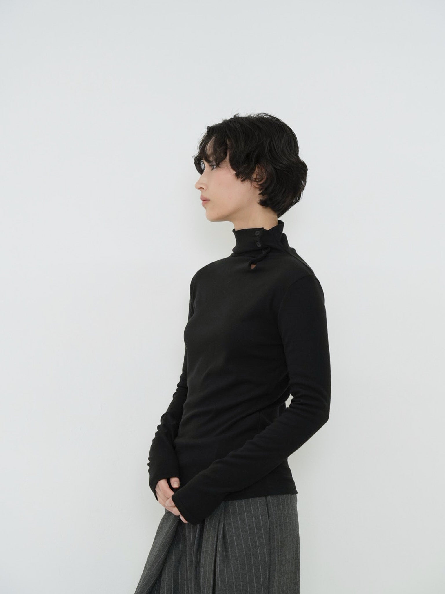 片側に並んだボタンがアクセントになり、シンプルながらも個性のあるスタイルを楽しめます。