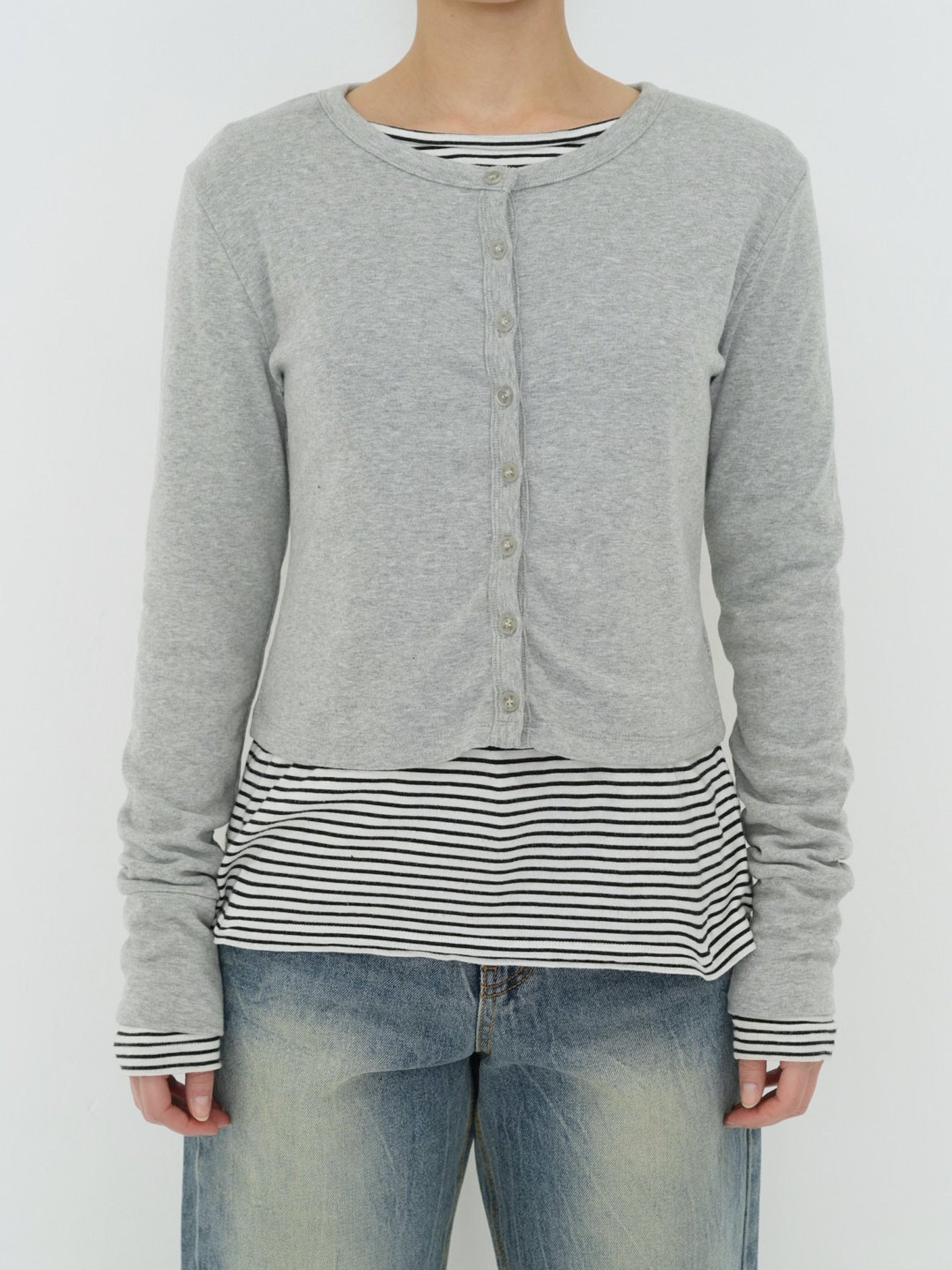 ラウンドネックとフロントボタンがシンプルながらも上品な印象を与え、どんなコーデにも馴染む万能アイテムです。